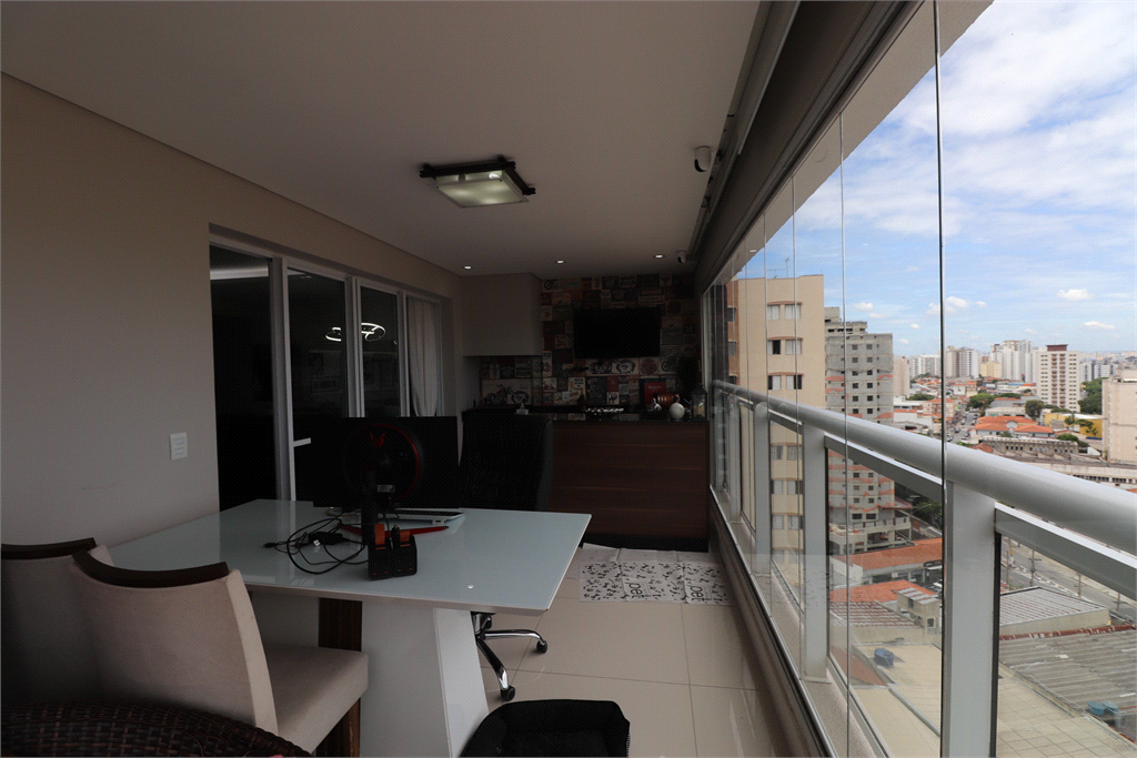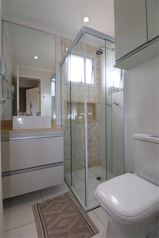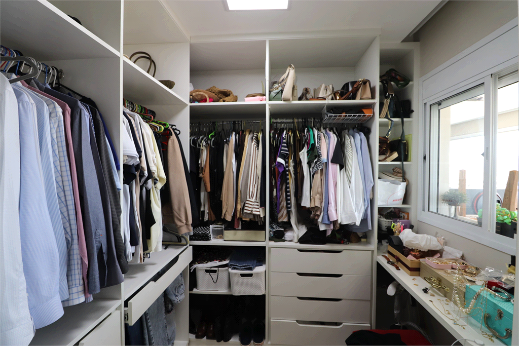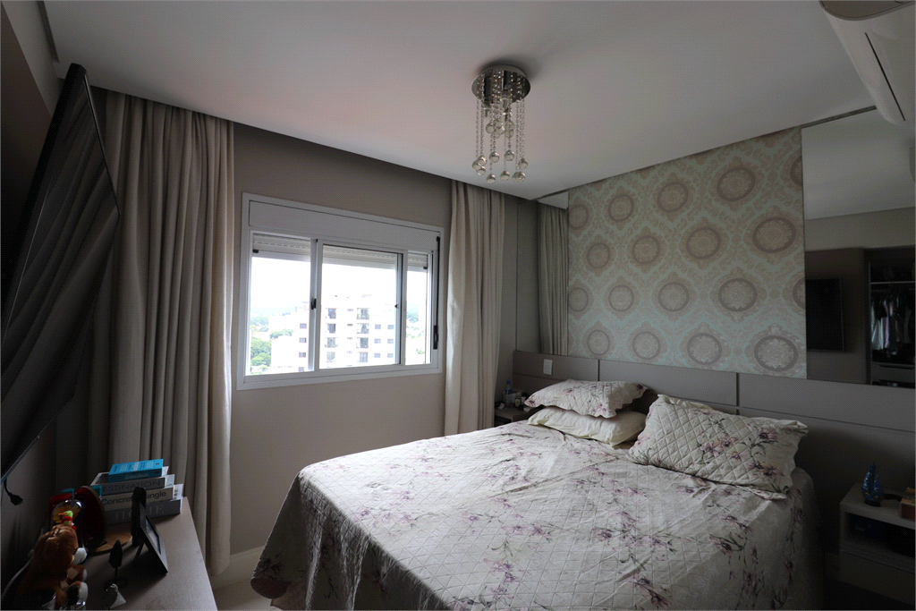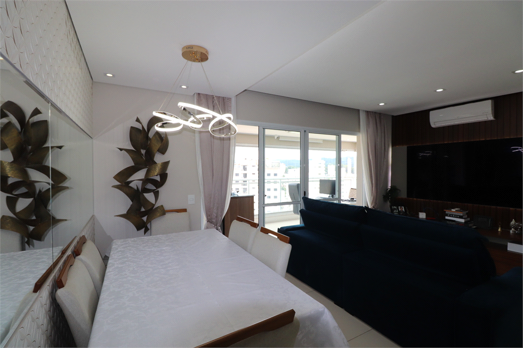 Armários planejados em todo o apartamento. Teto com forro de gesso e projeto de iluminação com lustres e luminárias. Ar-condicionado na sala e suíte. Papel de parede. Banheiros com box e nichos. Piso em porcelanato. Varanda com fechamento em vidro. Cortinas e persianas.